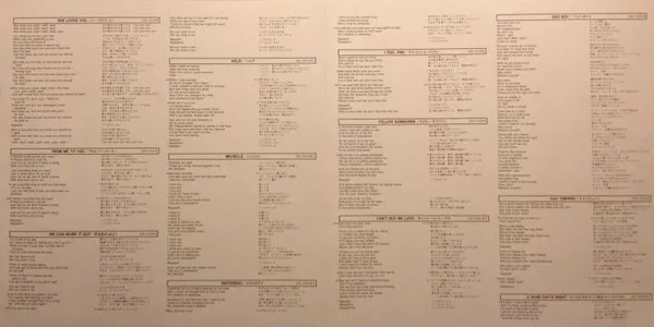 Writing credits on back sleeve: "All songs composed by Lennon-McCartney", while on labels it stat