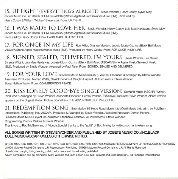 ℗ 1996 Motown Record Company © 1996 Motown Record Company Distribution: Polydor/Polygram