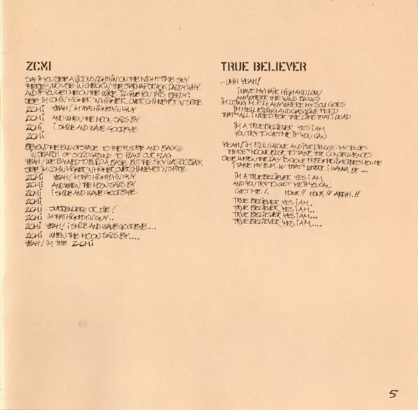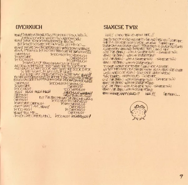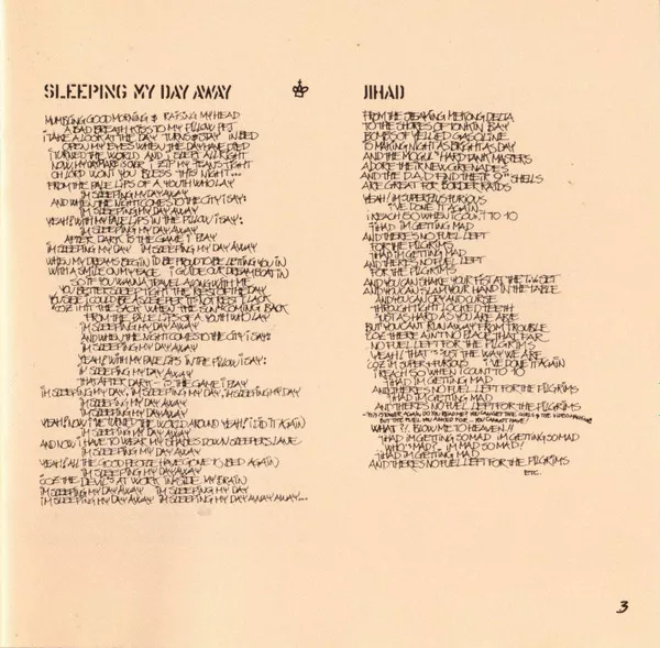 Photos and complete lyrics in 12 page front insert.