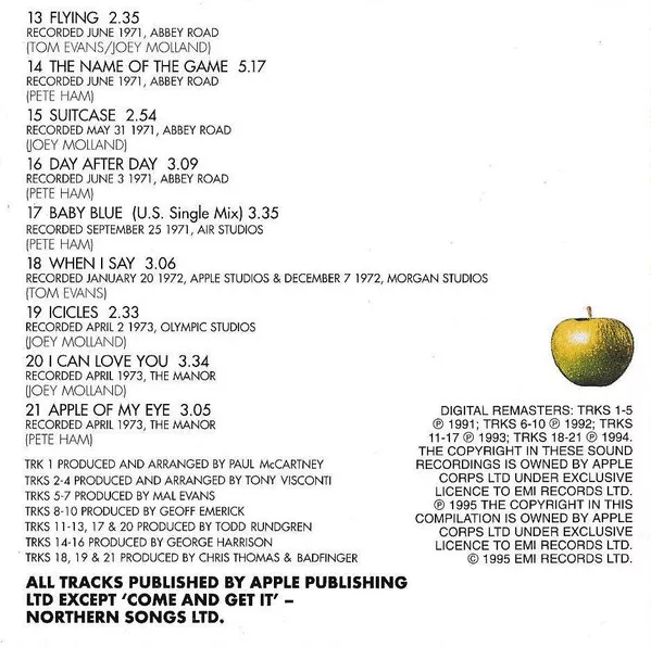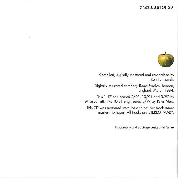 Apple Records, 7243 8 30129 2 3, CD SAPCOR 28, 1995, Europe PRESS