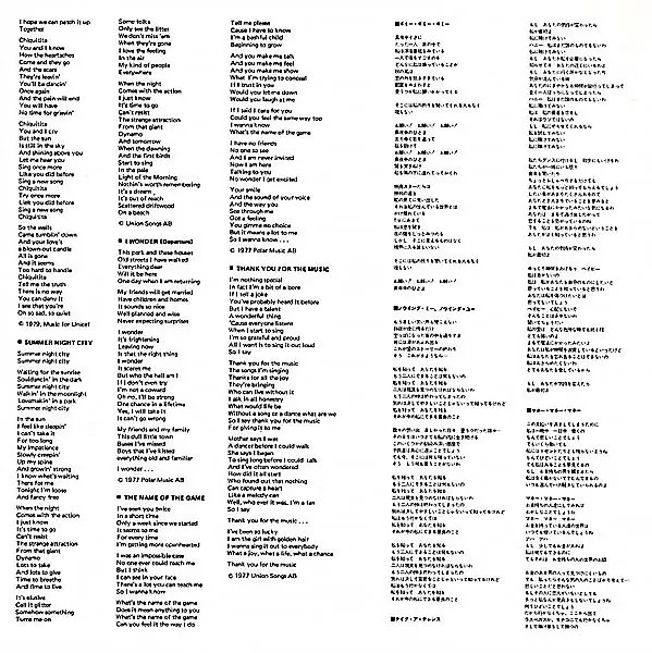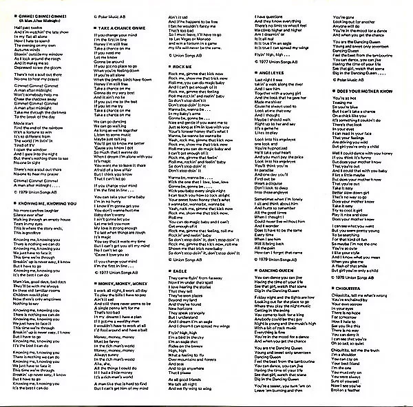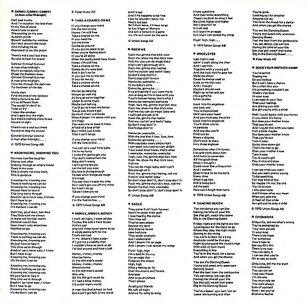 "Eagle", "I Wonder (Departure)", "Take A Chance On Me", "Thank You For The Music" & "The Name Of The Game" are from the LP "[r767377]".