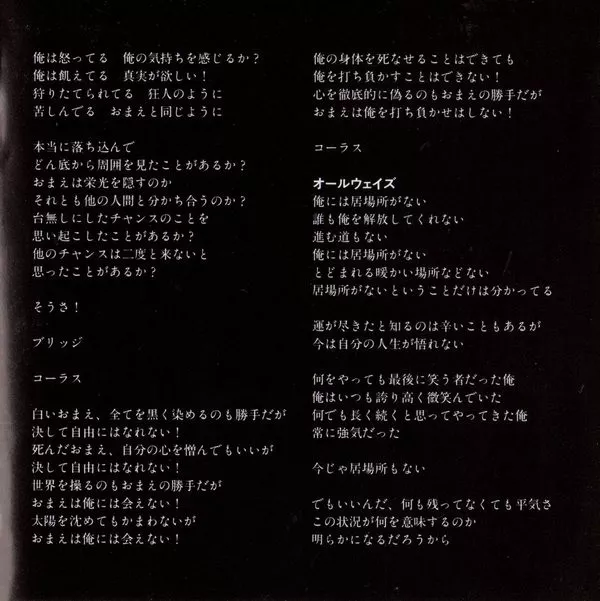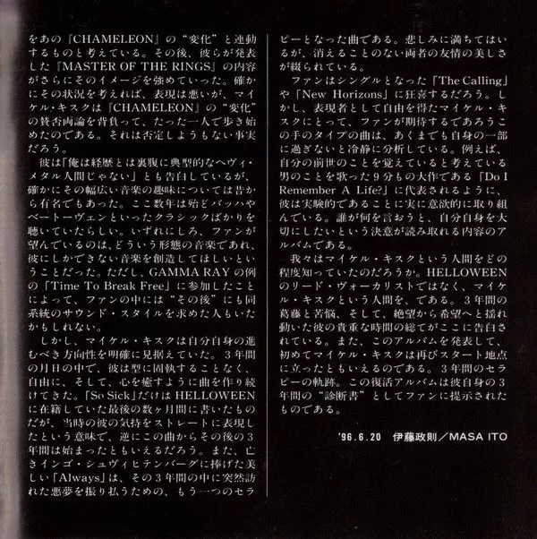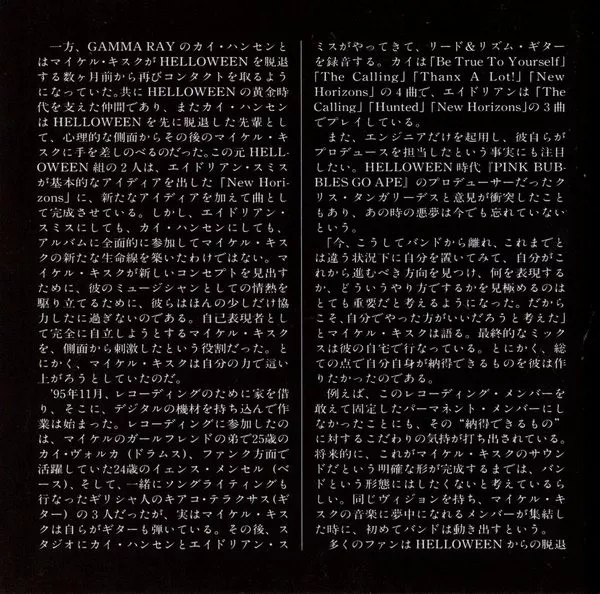 Includes one Japan-only bonus track "A Song Is The Just Moment", that is not listed on the back cover.