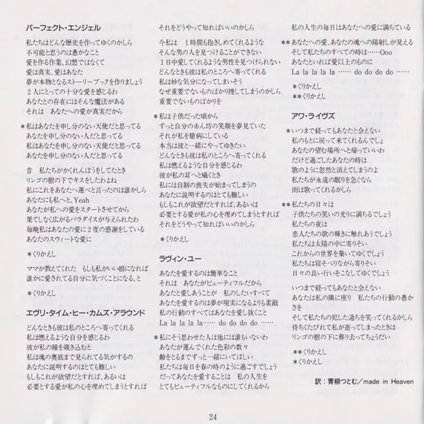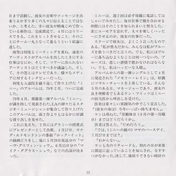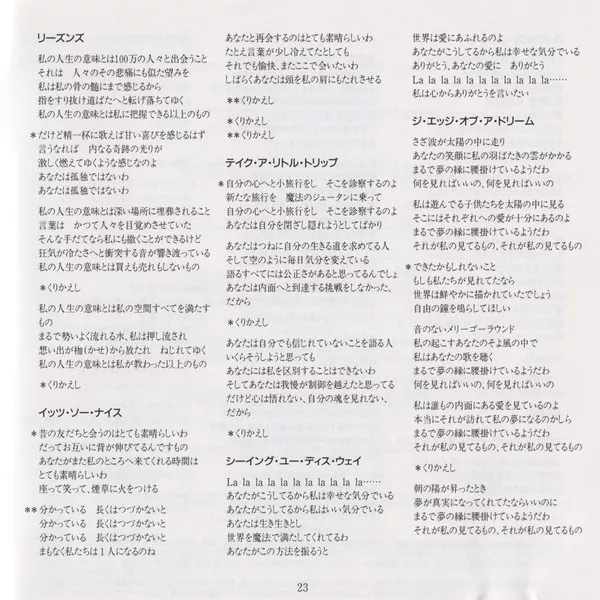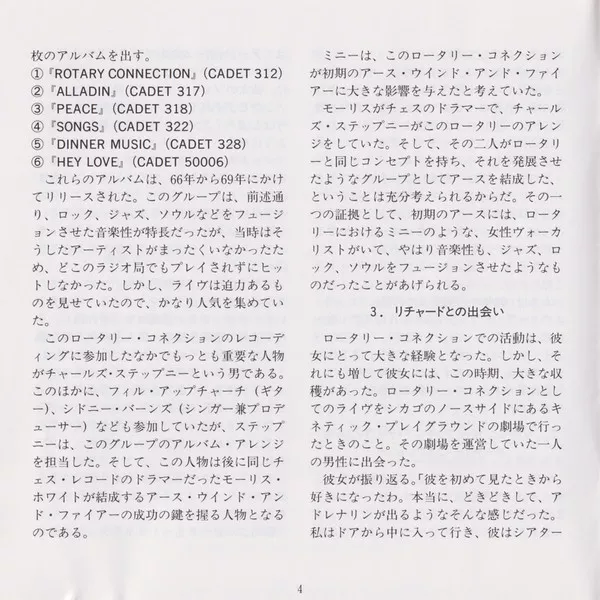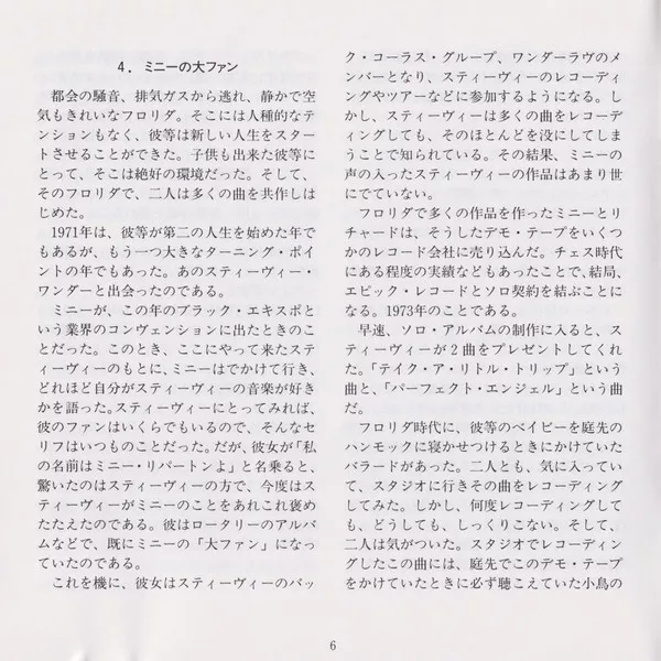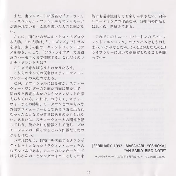 - 10-chapter artist biography plus album list (February 1993: Masaharu Yoshioka, "An