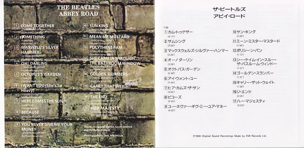 An E.M.I. Recording. Thanks to George Martin, Geoff Emerick and Phillip McDonald