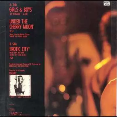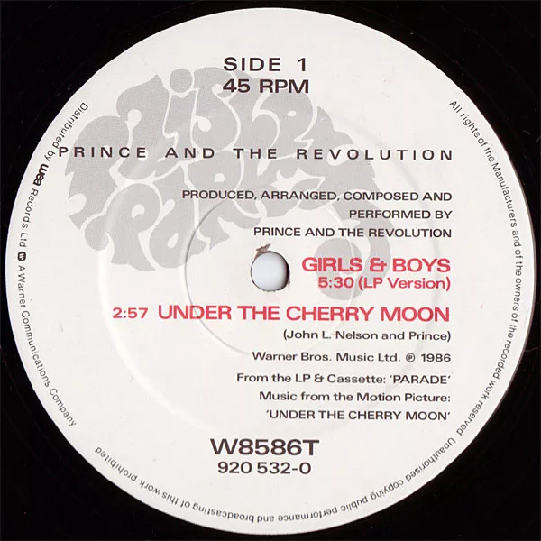 Tracks A1 & A2: From the LP & Cassette [url=http://www.discogs.com/release/125869]Parade[/url] Music from the Motion Picture: 'Under The Cherry Moon'