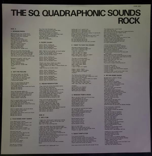 Includes a one page lyrics sheet and a one page SQ information sheet.
