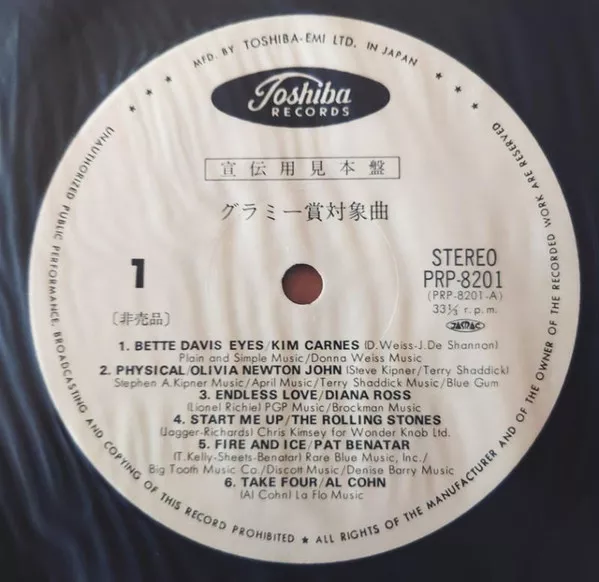 The label showed printed 宣伝用見本盤 グラミー賞対象曲