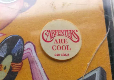 Initial copies came with tiny round sticker on cover stating "Carpenters are cool".