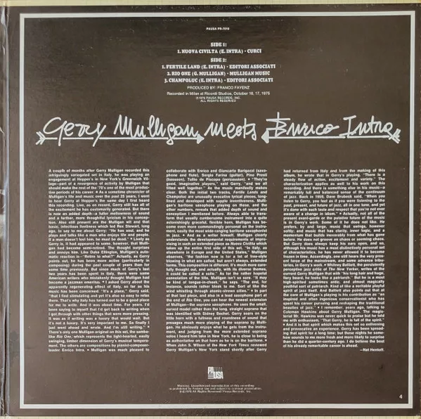 Pino Presti Jazz Collection - Fertile Land - Gerry Mulligan meets Enrico Intra