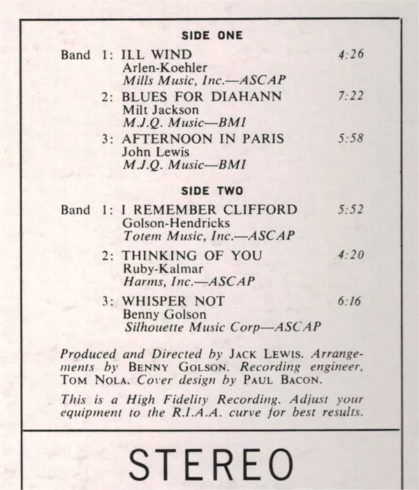Milt Jackson Sextet - I Remember Clifford