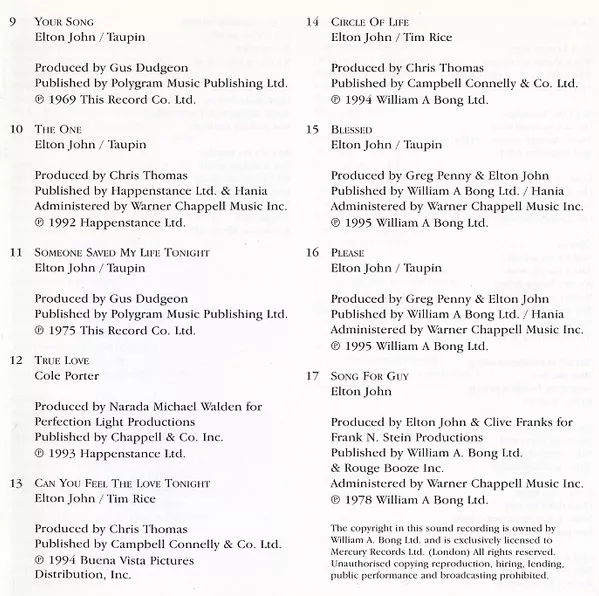Tracks 8 ℗1985, 14 ℗1994, 15 ℗1995, 16 ℗1995,