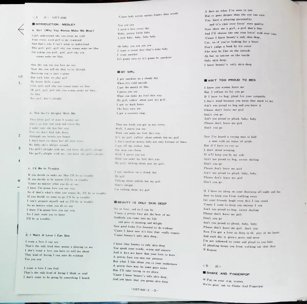 Introduction Medley: Girl (Why You Wanna Make Me Blue) - The Girl's Alright With Me - I'll Be In Trouble - I Wan't A Love I Can See