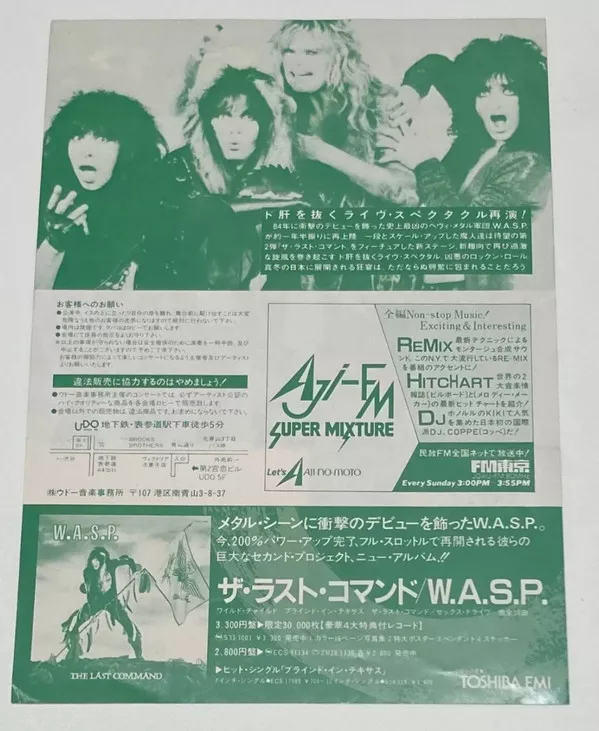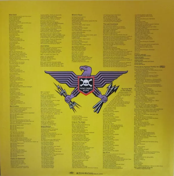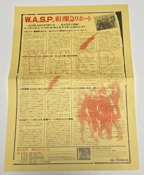 Includes color cardboard inner sleeve, black and white insert with Japanese lyrics, 16 page booklet, poster, sticker and W.A.S.P. logo necklace.