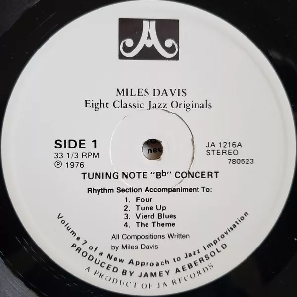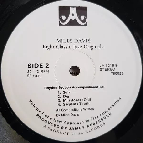 Front cover reads as "for You to play... 8 Classic Bebop Originals by Miles Davis" while the labels read as "Miles Davis - Eight Classic Jazz Originals".
