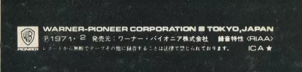℗1971•2 Warner-Pioneer Corporation, Japan.