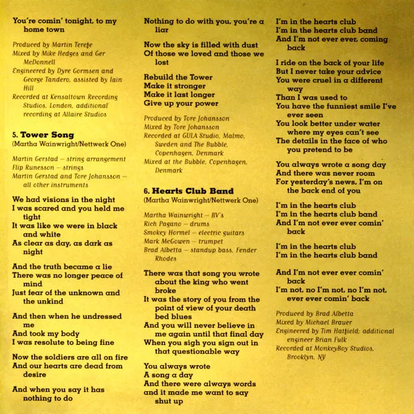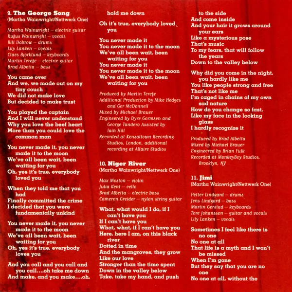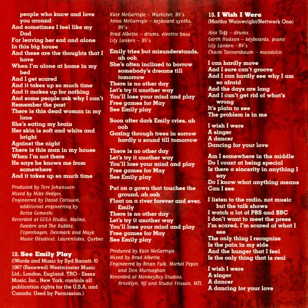 Insert includes song lyrics, photography, credits and thank-yous.