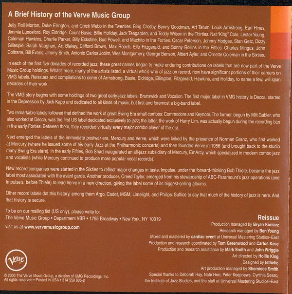Verve Records, 314 559 805-2, V6-8806, 2000, USA PRESS