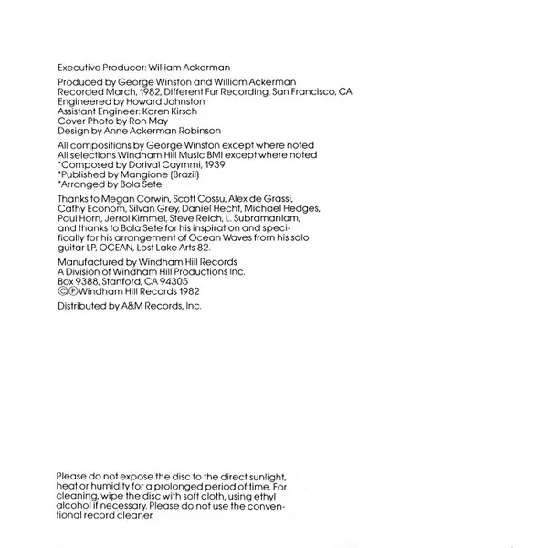 All selections Windham Hill Music BMI except "Ocean Waves (O Mar)"