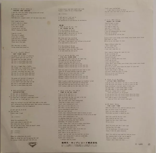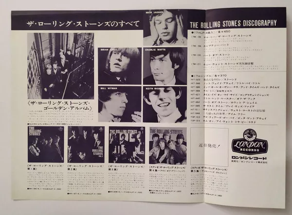 The gatefold cover includes a booklet in Japanese and English with the Stones history, biographies of the members, and discography: it includes a small 3-month calendar/discography insert and the usual lyrics insert.