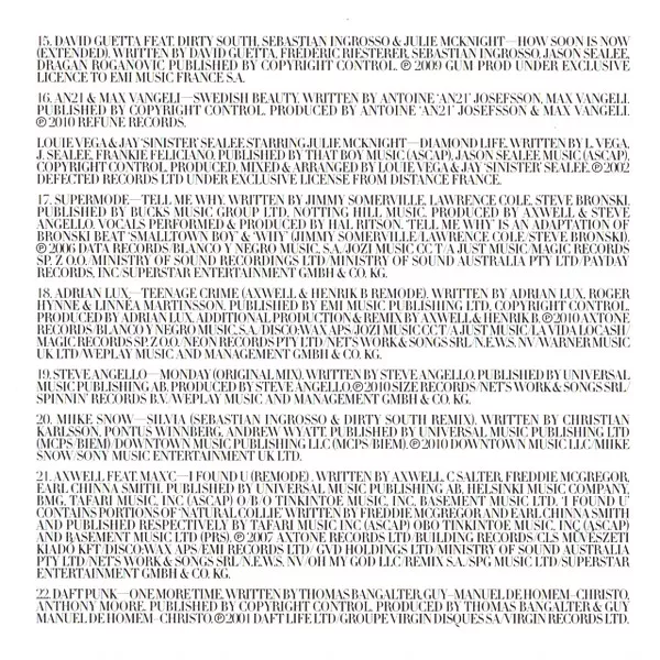 ℗ & © 2010 Virgin Records Ltd under exclusive license from Swedish House Mafia Holdings Ltd (BVI).
