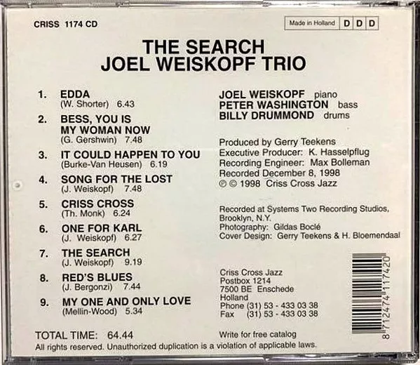 Criss Cross Jazz, Criss 1174 CD, 1999, Netherlands PRESS